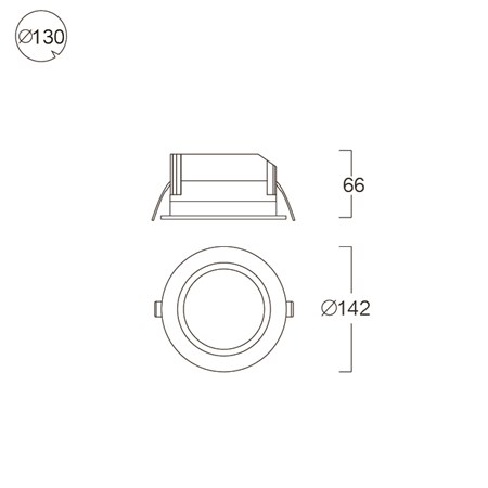 Dimension 142x142x66 mm.